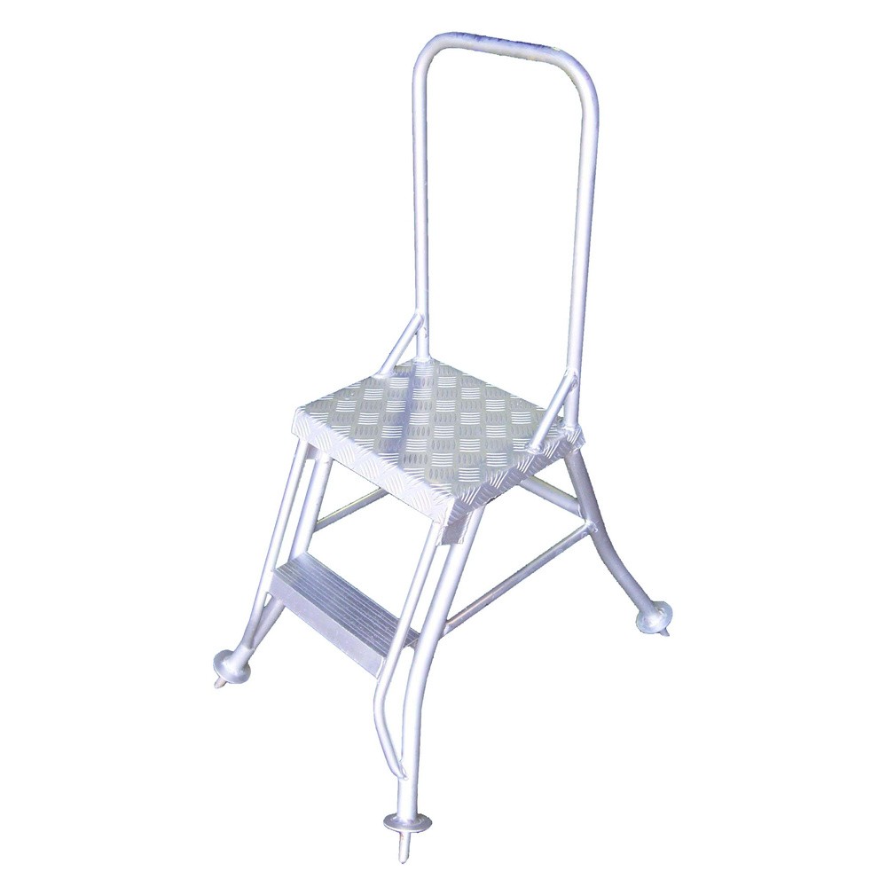 Aluminium checkerplate platform measuring 300mm x 370mm with a steady rail on the front, provides an extremely safe and strong working surface for pickers. Foot spikes provide good purchase on the ground and a two step picking stool increases working height by 600mm. Steps are 80mm wide with non slip grooves maximising comfort and are fully welded inside and out. The stools are load rated to 150kg and are suitable for all lower level picking..