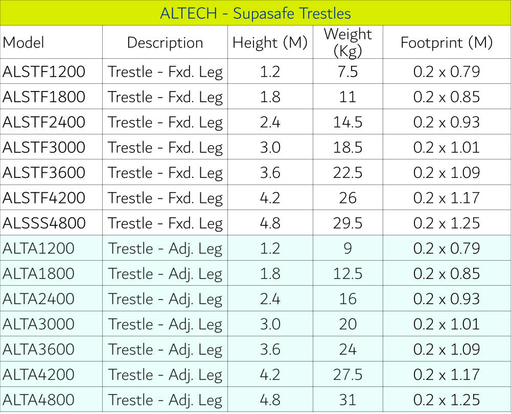 Altech Supasafe Aluminium Trestles exceed AS/NZS1576.5-1995 CI.7