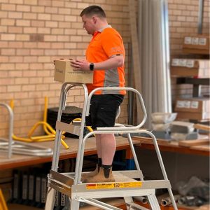 Big Platform – SureFoot platform steps have a generous sized platform with a working area measuring 425 x 550 millimeters and the reinforced all aluminium platform with an anti-slip surface and waist high rear safety bar provides a secure working environment.