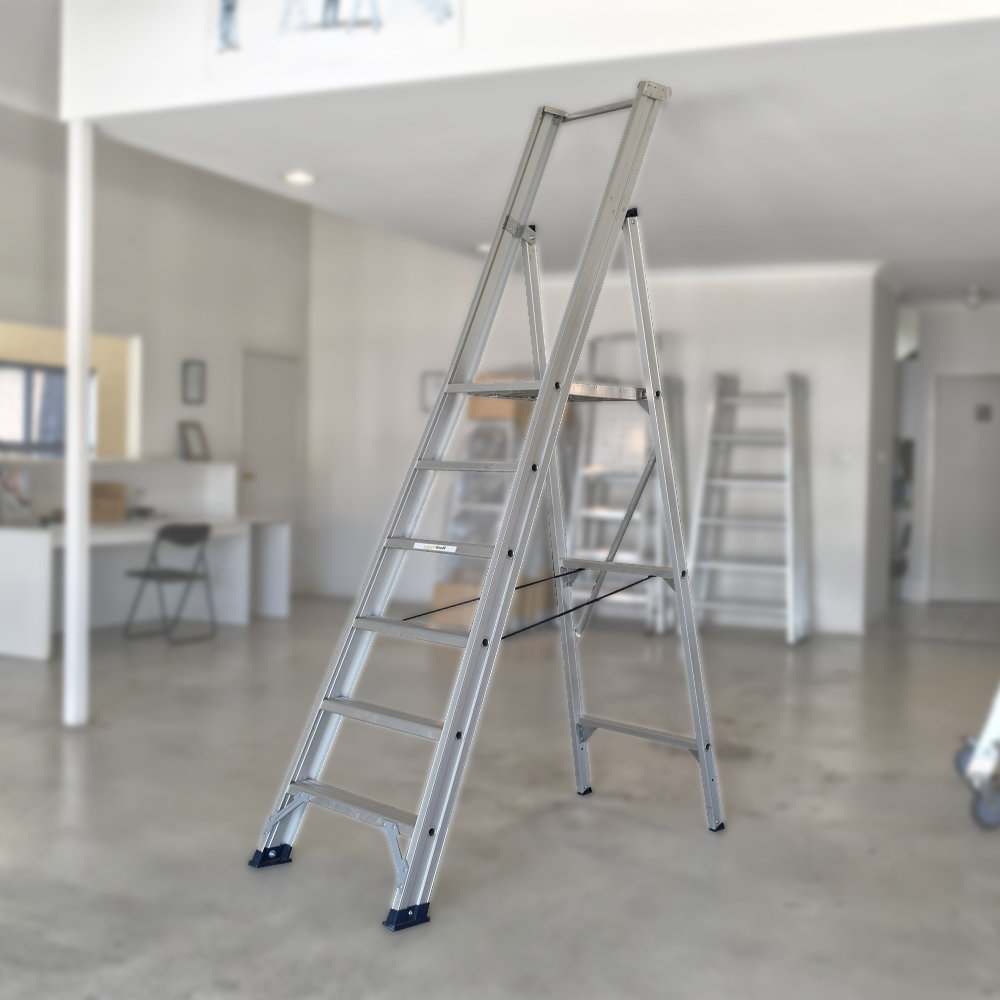 Big Platform – SureFoot platform steps have a generous sized platform with a working area measuring 425 x 550 millimeters and the reinforced all aluminium platform with an anti-slip surface and waist high rear safety bar provides a secure working environment.