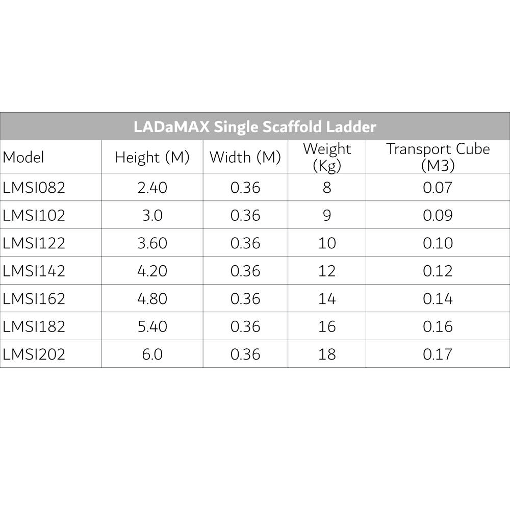 LADaMAX Aluminium Single Scaffold Ladders. A lightweight and rigid single ladder for professionals providing the ultimate in height safety.