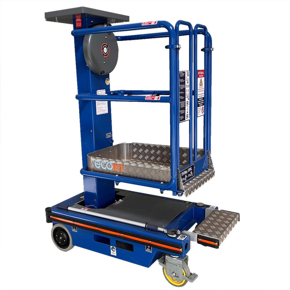 Battery and electric power free, the Pecolift and Ecolift are elevated by simply and easily rotating the handle; with only 10% operator input and 90% mechanism input, the patented lift mechanism glides you smoothly to your chosen working height in seconds. The Pecolift and Ecolift are truly an eco-friendly solution