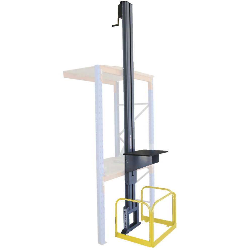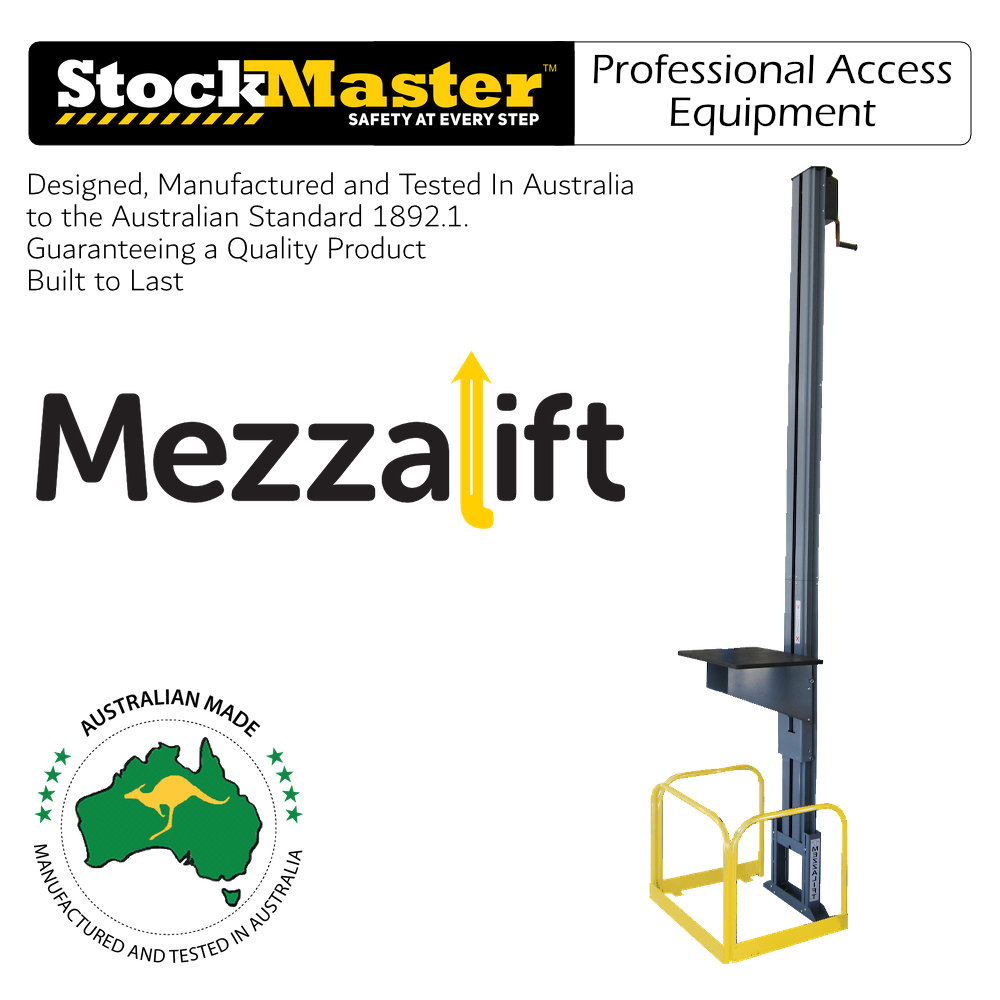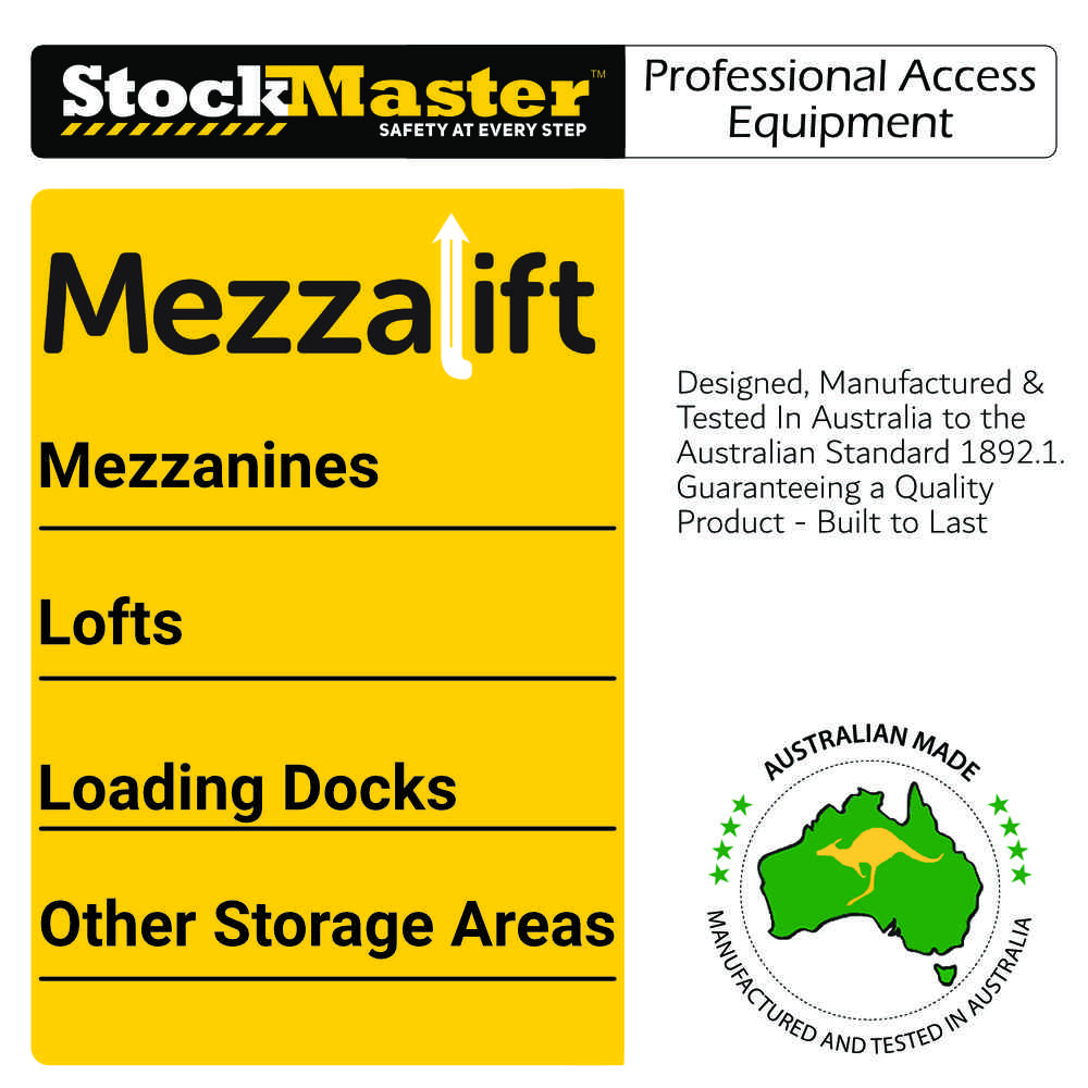 Mezzalift is the ideal companion to Stockmaster Mezzalad providing for personell access and goods transport to mezzanine floors and storage areas above factory offices and tea Rooms etc.